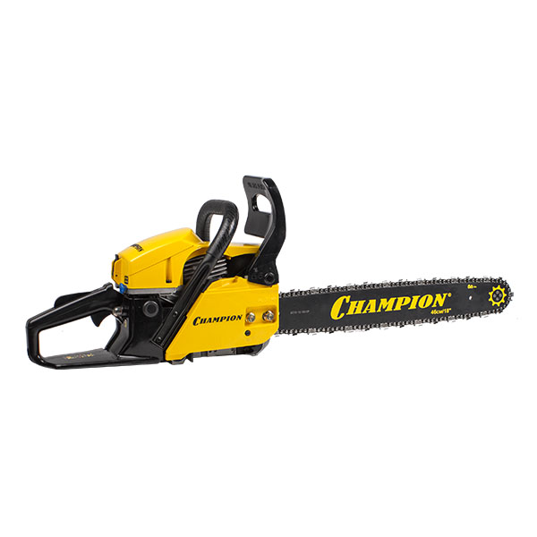 Бензопила Champion 256-18" укомплектована 45-сантиметровой шиной и цепью. Подходит для валки деревьев. Имеет мощный мотор, который запускается с ручного стартера. Предусмотрен механический тормоз цепи для безопасности пользователя. Благодаря ручному насосу для подкачки топлива не возникнет трудностей при запуске инструмента после длительного перерыва. Пила оснащена регулируемой автоматической системой подачи масла на шину и цепь.
