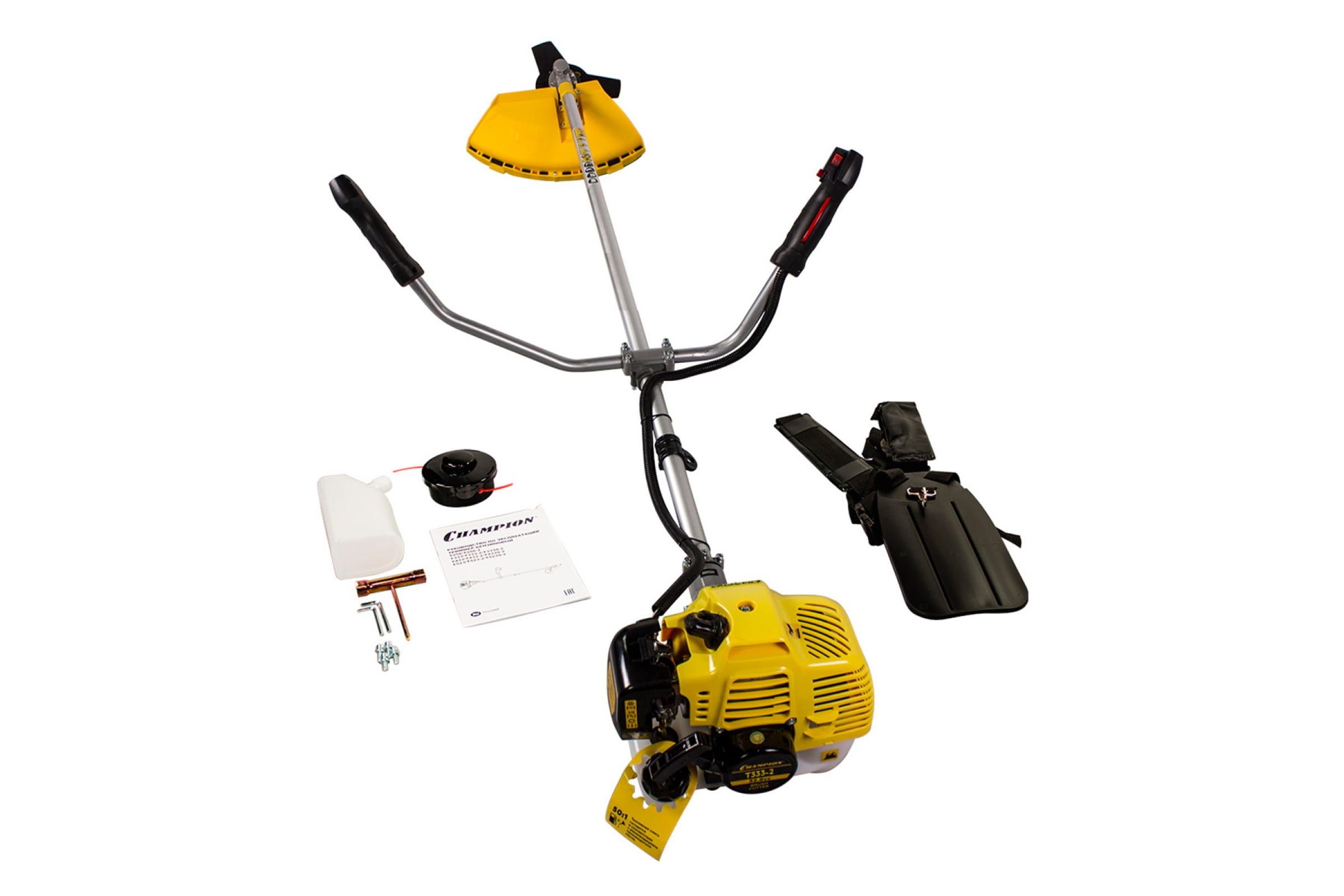 Триммер Champion T333S-2 разработан для ухода за газоном. Оснащен бензиновым 2-х тактным двигателем, не зависит от подключения к электрической сети, что позволяет убирать траву в любом месте. Имеет триммерную головку и нож. Праймер облегчает холодный запуск двигателя.