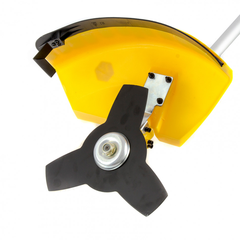 В комплект входит катушка с полуавтоматической подачей лески, стальной нож.