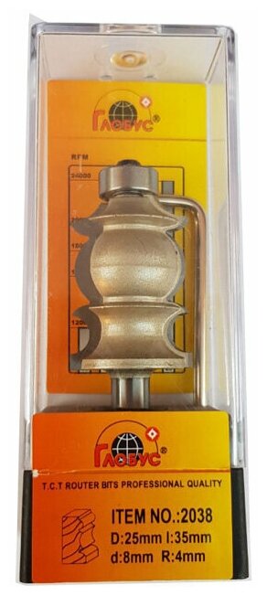Фреза 2038 D25 h35 R4 хв8мм кромочная фигурная
